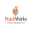 Logo for PeachWorks Concrete & Design, LLC, featuring a stylized peach with a concrete chunk inside, displaying the company name in large text with a glowing effect.